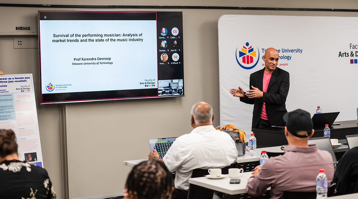 Prof Karendra Devroop, Professor in the Department of Performing Arts, gave a riveting account of the challenges that performers face in his keynote address, Survival of the performing musician: Analysis of market trends and the state of the music industry.