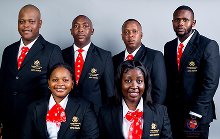 2025 TUT ISRC - Back row (from left): Banele Ntsele (President General); Stenlie Mthethwa (Deputy Secretary General); Eugene Ngwenya (Deputy President General); Khumo Mulamu (SARO General); Nqobile Shezi (Treasure General) and Wisani Hlungwani (Secretary General).
