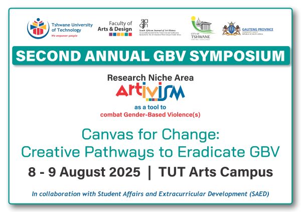 This two-day event will be presented in collaboration with the TUT Directorate: Student Affairs and Extracurricular Development (SAED), the City of Tshwane (CoT), the South African Journal of Art History (SAJAH) and the Gauteng Department of Community Safety (GDCS). The symposium will focus on multi-vocality, interdisciplinarity and creative expressions in addressing GBVF within higher education and society.