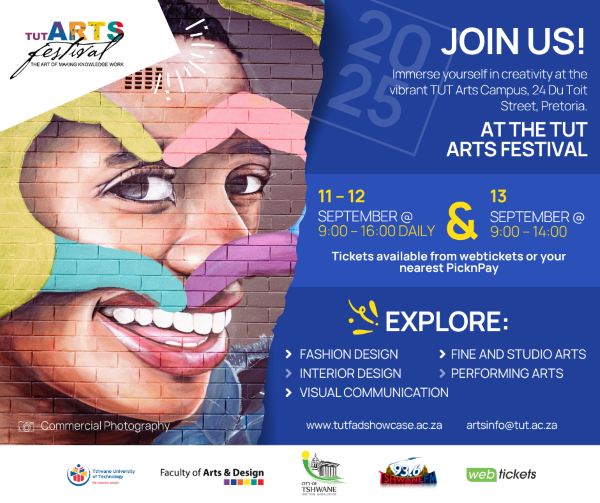The clock starts ticking as we edge closer to the Tshwane University of Technology (TUT) Arts Festival. The Faculty of Arts and Design is already weaving its magic, choreographing every detail for this year’s edition.