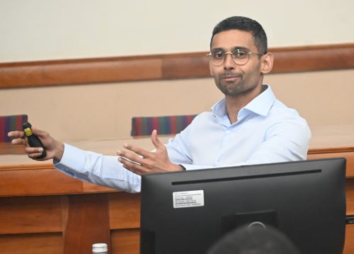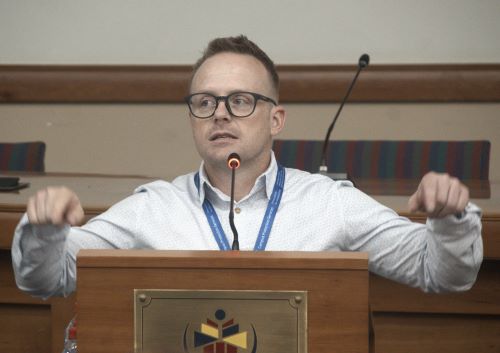 Prof Clifford Lewis addressing the audience during the Deans' Seminar. He is an Associate Professor of Marketing, School of Business at Charles Sturt University in Australia and his research centers on inclusion, belonging and how marginilised groups experience community and place.