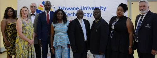 Prof Hlengani Mathebula, Dr Mantoa Kgaphola and Dr Kenneth Netshiombo, with staff members from TSB, TUT and the Department of Agriculture, Rural Development, Land and Environmental Affairs
