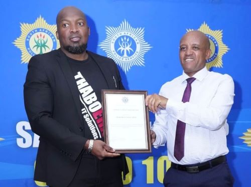 Thabo Langalebalela, a force in community upliftment, Founder of Thaboera IT Solutions and Tshwane University of Technology alumnus , receiving a South African Police Service Zwelentlanga Fatman Mgcawu District Excellence Award